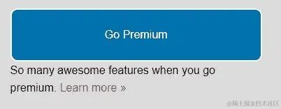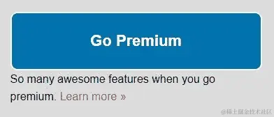 快速查看最终网站,这就是我们在 Go Premium 按钮上的目标。有一个白色边框,白色文本,蓝色渐变,并且周围有足够的填充: