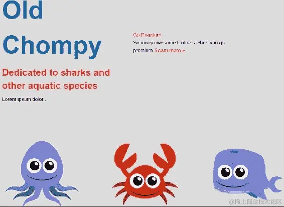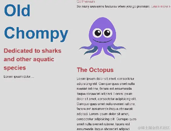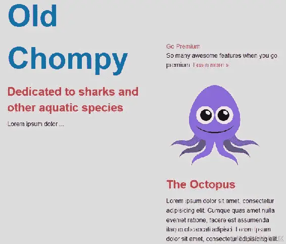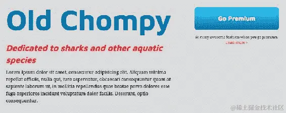 顶部边距应该解决我们的第一个问题,所以在.go-premium选择器中添加margin-top为125px: