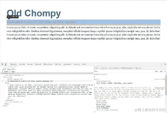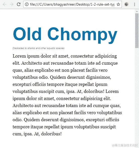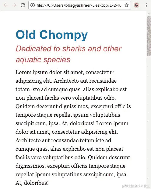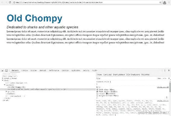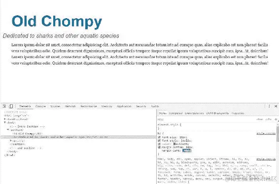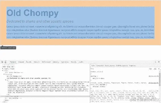 所以让我们通过查看我们网站上的h1来实际看一下。这是蓝色文字,上面写着“Old Chompy”。