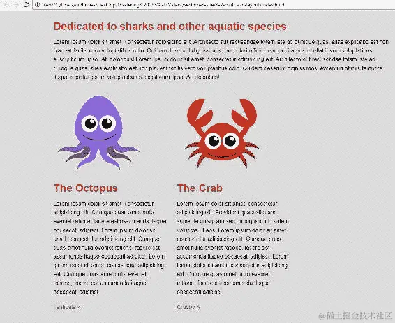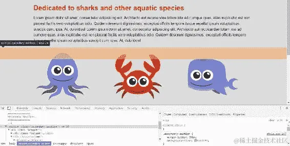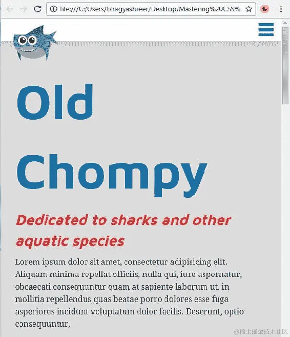 现在,让我们来看一下我们将要构建的最终网站。为了学习 CSS,我们将完成构建以下关于鲨鱼的 HTML5 网站。我说完成构建这个网站,是因为基本的 HTML 和 CSS 已经就位,你可以从本书的下载包中下载它们。我们将添加我将向你展示的所有东西,以及更多。这个网站采用了模块化和可重用的 CSS,你将在本书中学到。该网站首先将使用浮动进行布局,然后我们将使用 flexbox 重写布局。我们还会为文本使用 Web 字体: