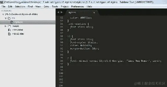 目前,我们将规则集写在外部样式表中。你可以看到它实际上是一个独立的文件: