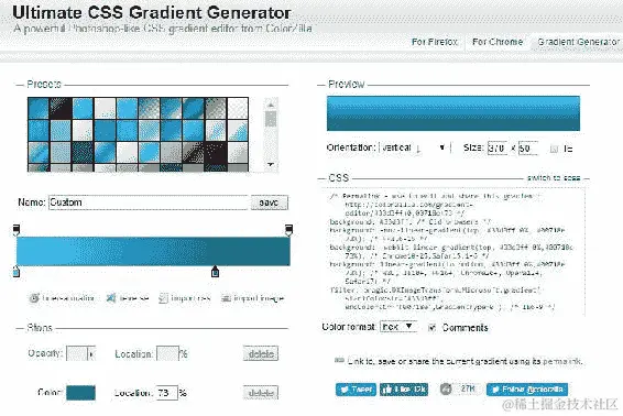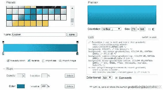 最终的渐变生成器创建了八个不同的属性。哇!第一个只是旧版浏览器的背景颜色,不支持渐变的语法: