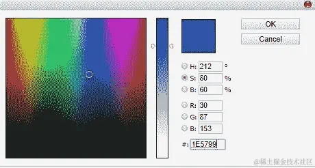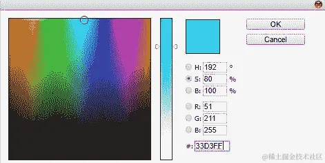 现在我们输入要使用的颜色,即33D3FF,然后点击确定。整体上是一个很好的类似 Photoshop 的界面: