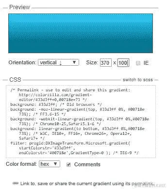 让我们去www.colorzilla.com/gradient-ed…。该工具默认为以下内容。右上角甚至有一个预览: