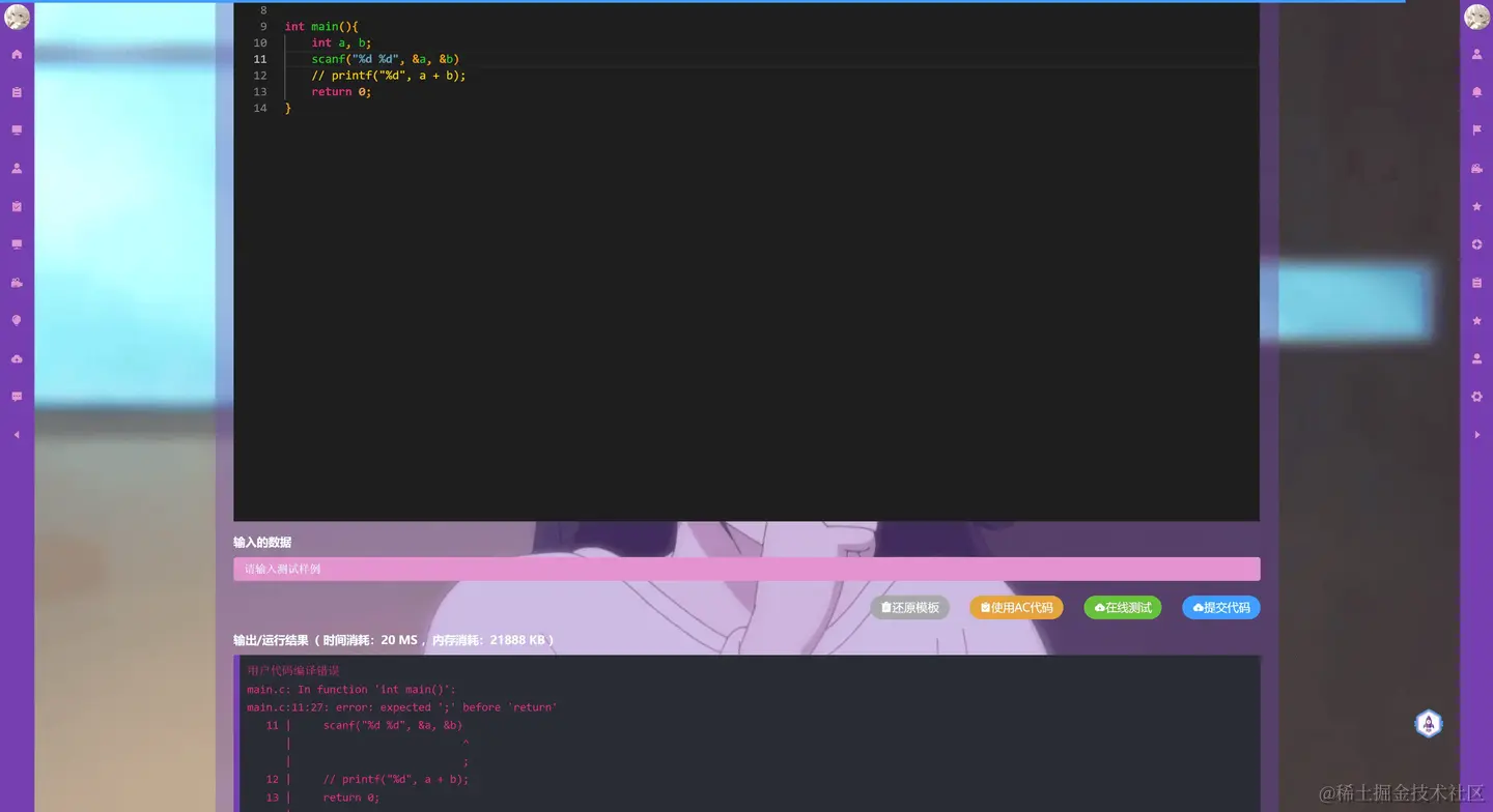 介绍一款编程平台,专为学生和开发者量身打造!平台拥有近4000道编程题目,支持多种编程语言(包括C、C++、JavaScript、TypeScript、Go、Rust、PHP、Java、Ruby、Python3和C#),为您提供全面的学习和实践环境。您可以查看代码记录,轻松保存和运行云端代码。通过私聊和群聊与同行互动,方便地分享文件,并探索我们的文章、问答板块和在线商店。通过每日一题、精选题单和刺激的编程竞赛提升您的技能,是备考编程考试的理想选择。您还可以自定义系统UI,使用视频或图片背景,打造独一无二的编码体验,让您的编程之旅充满乐趣与挑战!