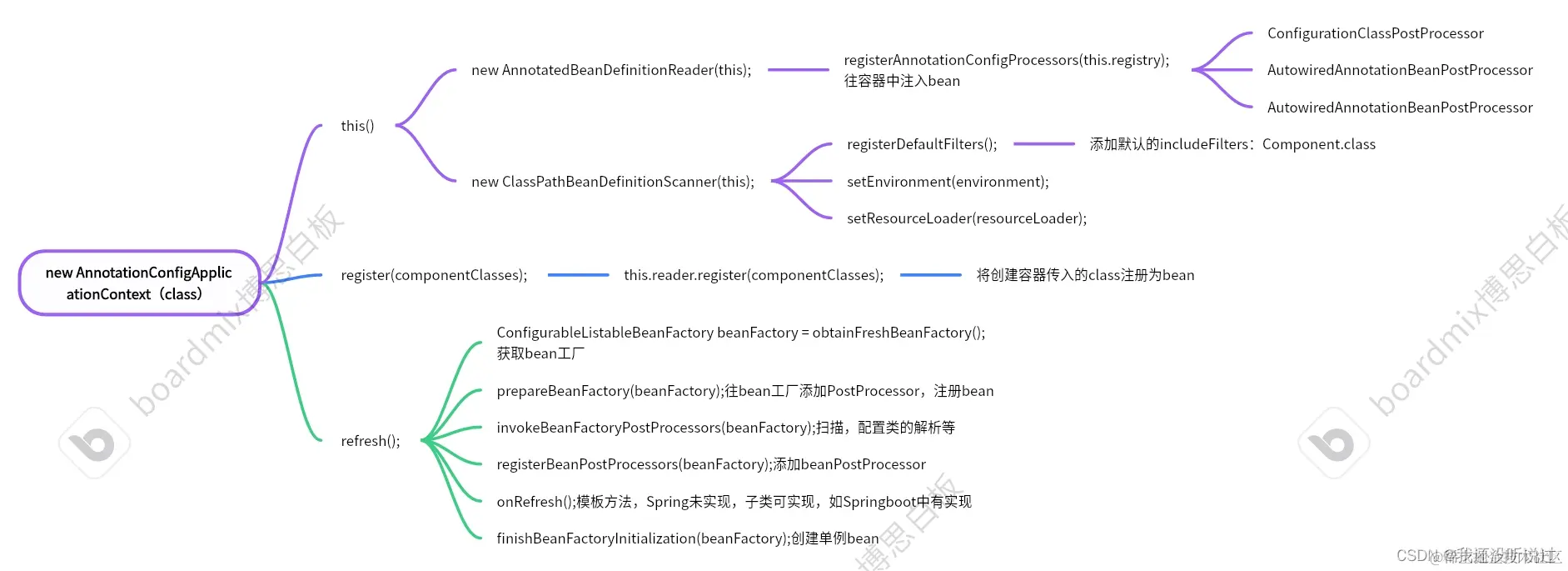 这里还是以:AnnotationConfigApplicationContext()这个对象为例:进入这个对象,发现在它的构造方法中其实有三个方法:
