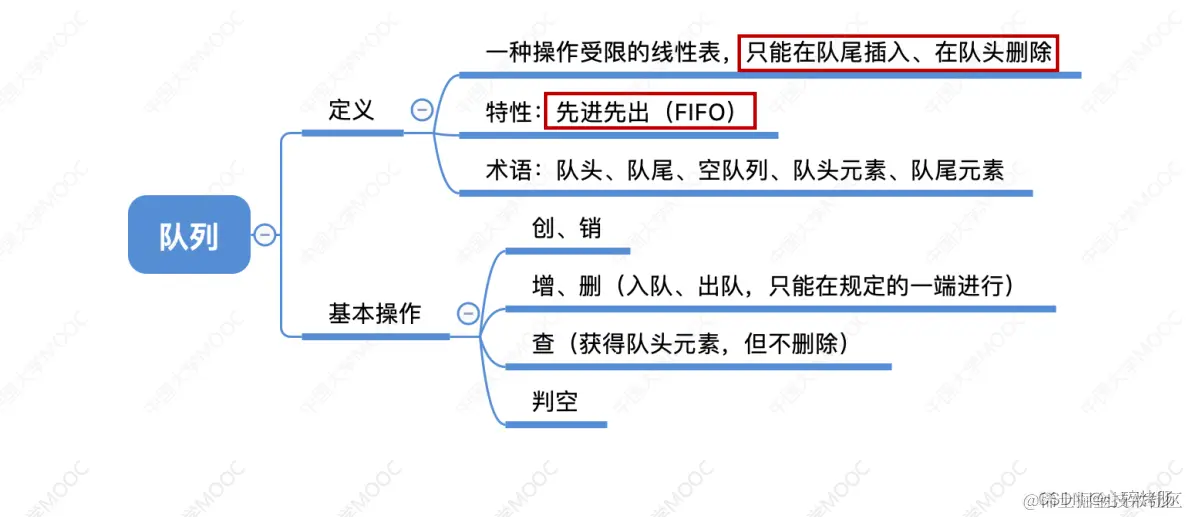 - InitQueue(&Q):初始化队列,构造一个空队列 Q。