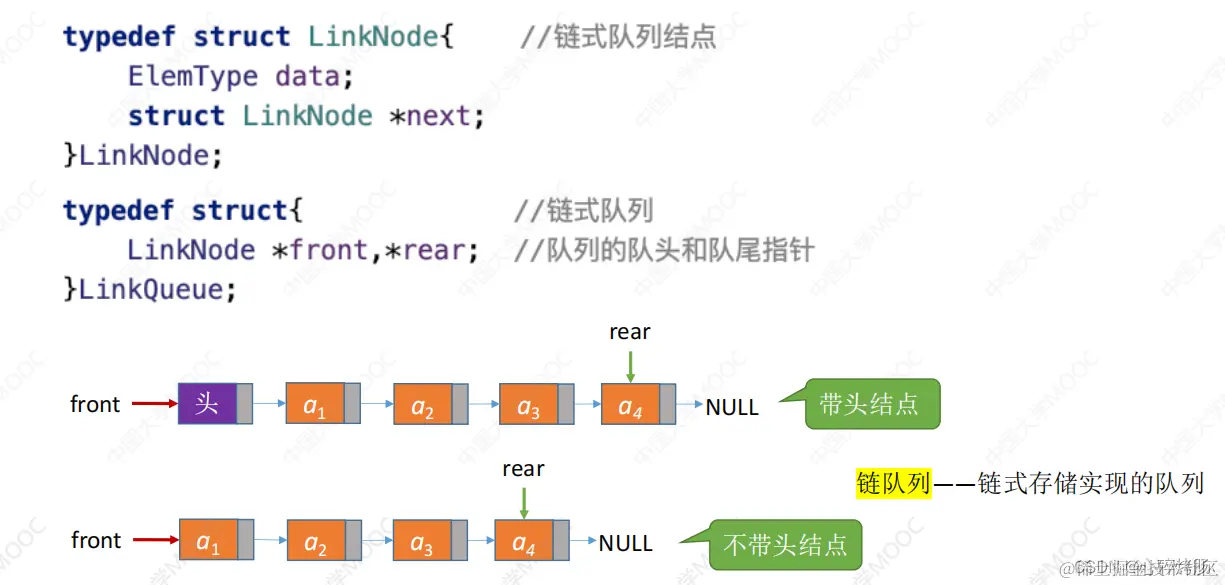 LinkNode *front,*rear; //队列的队头和队尾指针