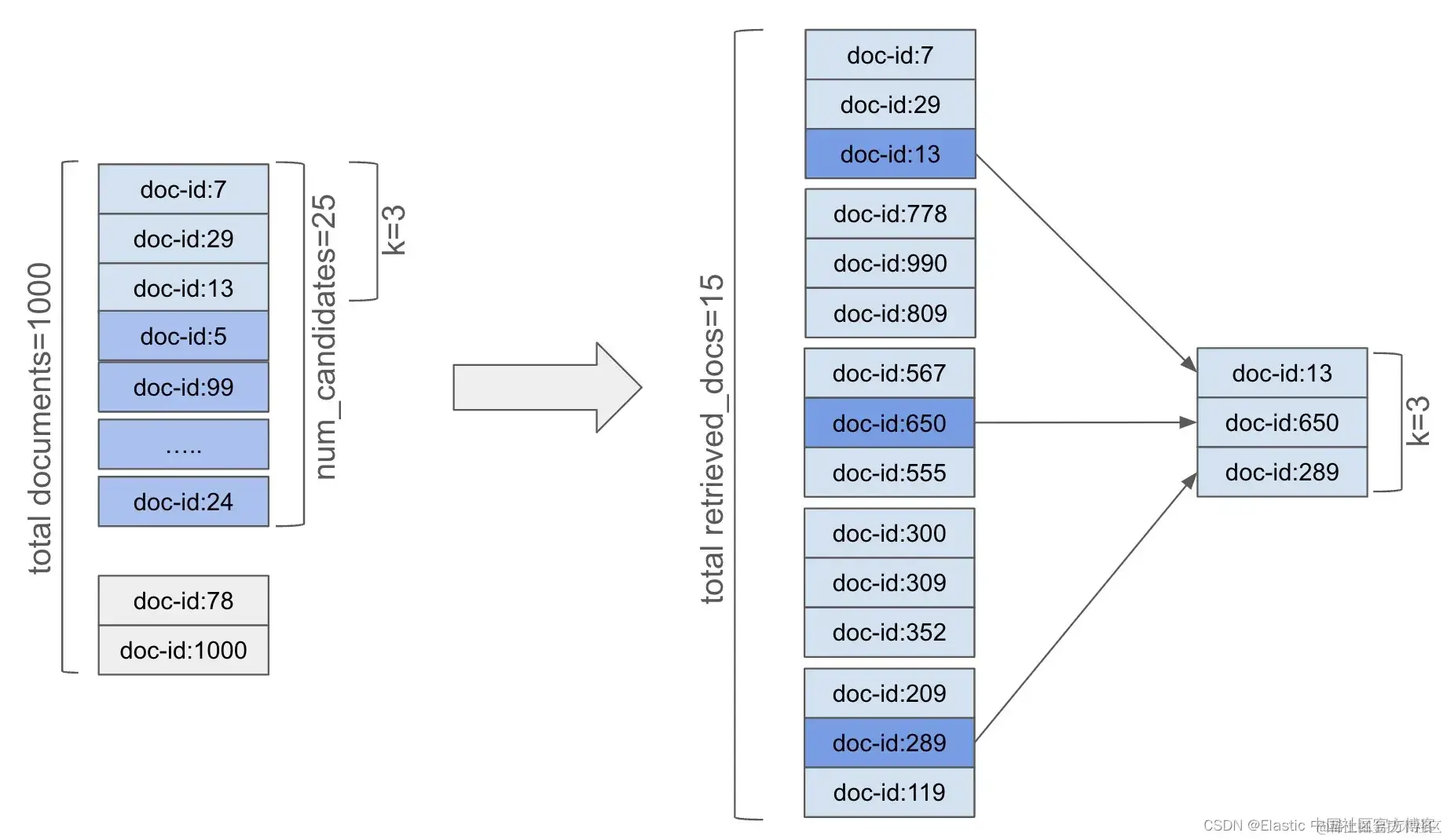 num_candidates 属性是每个分片作为潜在匹配项的更广泛的候选文档集,以确保最终结果尽可能准确。