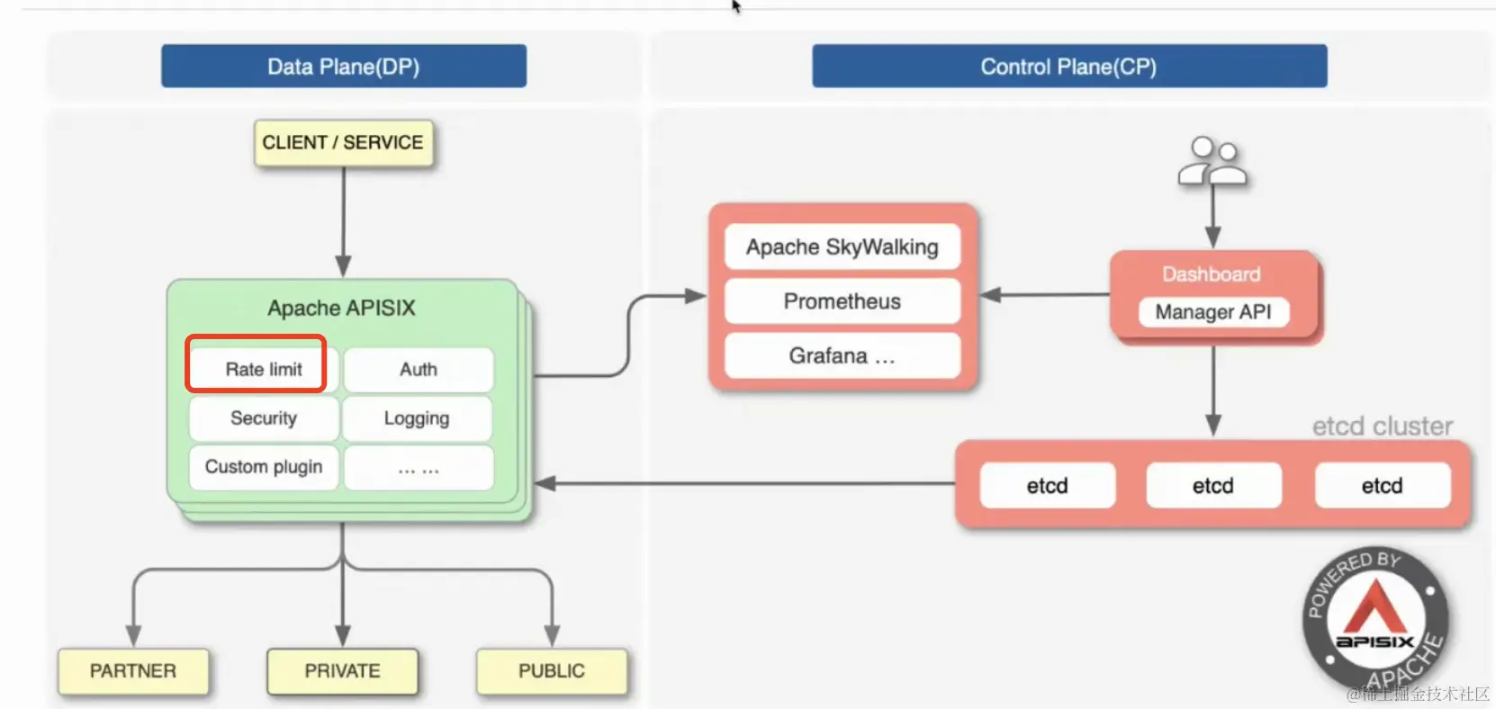 和之前前司使用 Sentinel 在应用内做的限流相比,使用 apisix,可以在更前面统一做限流操作,不进入业务层。