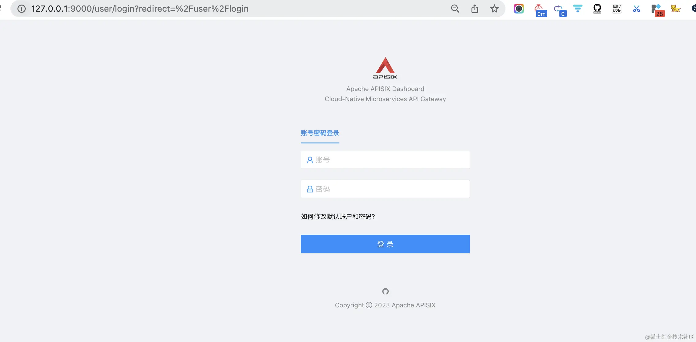 默认账号/密码为 admin/admin