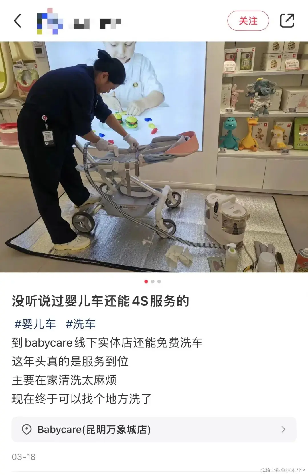 不仅如此,Babycare还凭借线下100+门店,为用户开启了“推车洗车服务”,在婴儿推车的“后市场”迈出了创新的一步,打造了产品和服务的闭环。目前,该服务已获得诸多用户的“点赞”:“Babycare线下实体店还能免费洗车,真的是服务到位。在家清洗太麻烦了,现在终于可以找个地方洗了。”