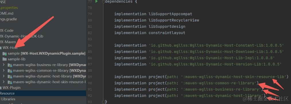 - host总共设计成5个工程,其中1个宿主sample工程 4个宿主工程依赖的sammple-lib工程,