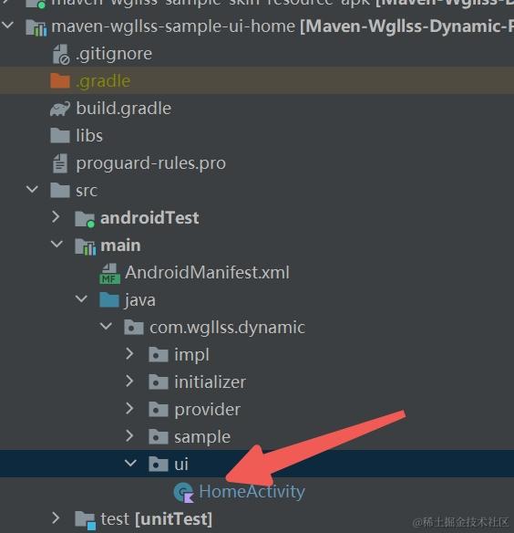 所以maven-wgllss-sample-ui-home工程中所有开发,context上下文和原生一样,唯一注意时:HomeActivity的包名路径com.wgllss.dynamic.ui最好不要动,否则要动宿主host中AndroidManifest中注册路径,我示例框架已经考虑到这个了,不同工程迁移,HomeActivity设计成不随业务动,所以如下: