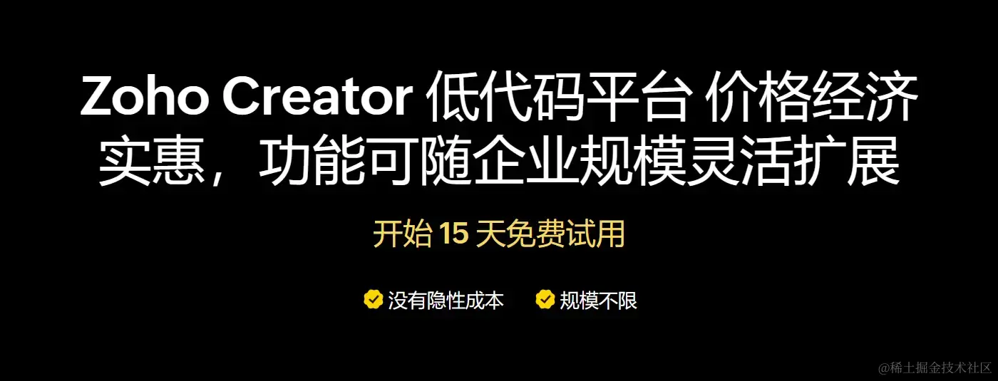 在快速变化的商业环境中,掌握并利用好低代码这一利器,无疑将成为企业制胜的关键。Zoho Creator 是一个低代码开发平台,功能强大且足够灵活以适应您的业务需求。可提供可视化的开发模式,并附带大量模板和插件,使您的团队能够轻松创建流程特定的应用程序。在全球超过 13,000 的大中型组织和企业,都在使用 Zoho Creator 创建的应用程序,以更加精简的流程、项目和任务来管理他们的日常运营活动。