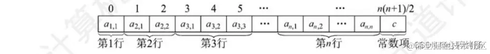 上三角矩阵在内存中的压缩存储形式如图所示。