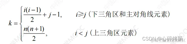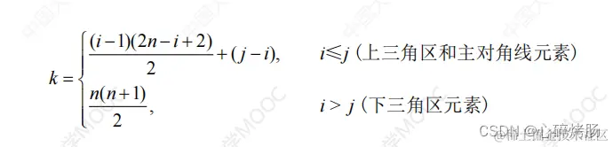 因此,元素aᵢ,ⱼ 在数组B中的下标k=1+2+…+(i-1)+j-1=i(i-1)/2+j-1(数组下标从 0开始)。