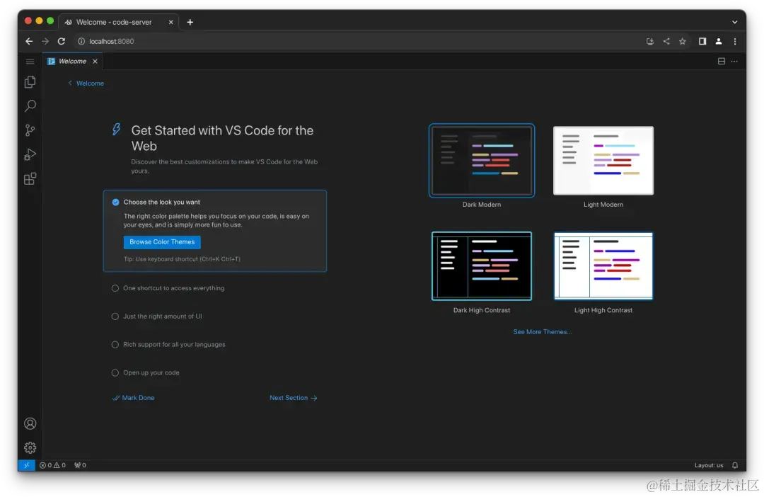 code-server支持用户对编辑器的界面和快捷键等进行自定义设置。此外,code-server还拥有丰富的扩展生态系统,扩展插件覆盖了语言支持、主题、代码片段和工作流程自动化等方面的功能,用户可以在code-server上安装VS Code的广泛扩展库,实现从VS Code到code-server的快速适应。