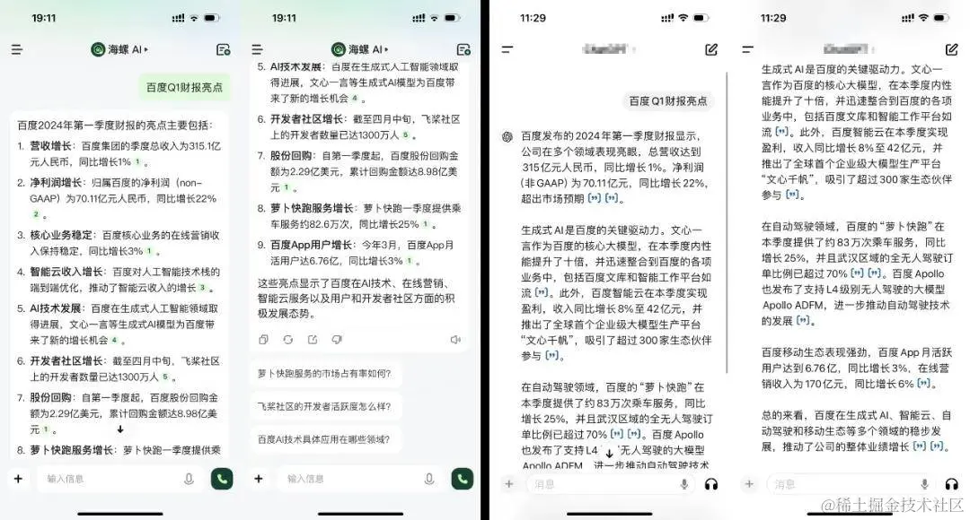 百度发布2024年Q1财报后,我们同时在海螺AI和国外的一款产品进行了对比,用户体验可谓高下立见: