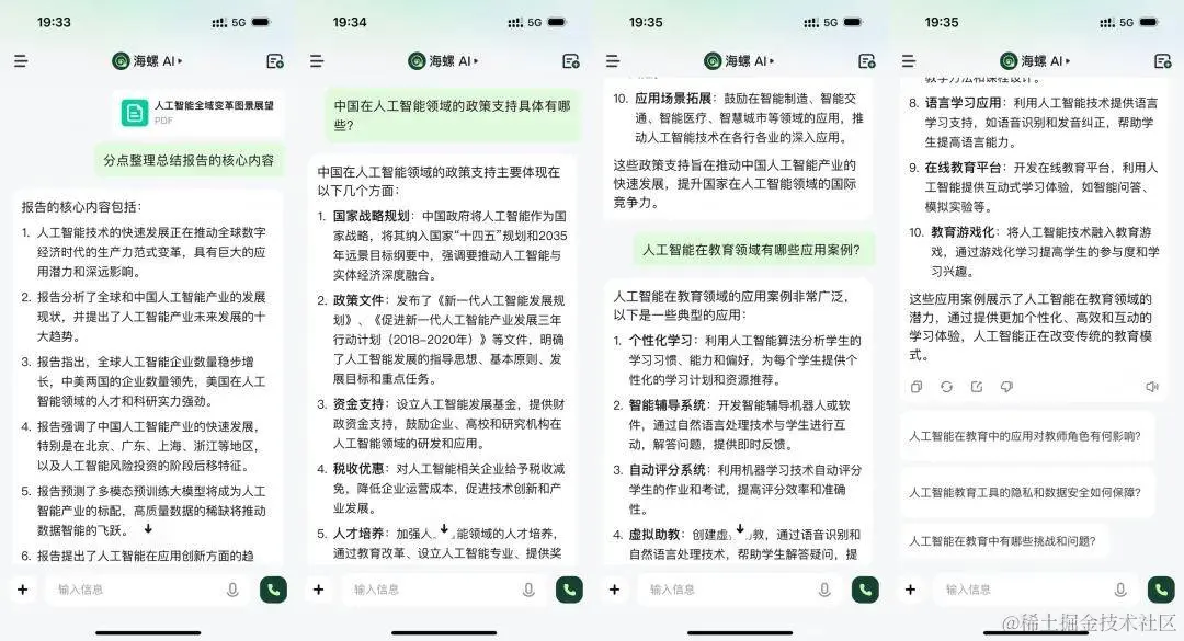 而产品能力的强弱,往往体现在一些细节中。以我们高频使用的长文总结为例,将第三方行业报告上传到海螺AI,可以准确梳理报告的核心信息,并根据报告内容进行对话。原先阅读一篇报告需要至少两个小时的时间,现在不到5分钟就能完成,工作效率可以说是实现了指数级增长。
