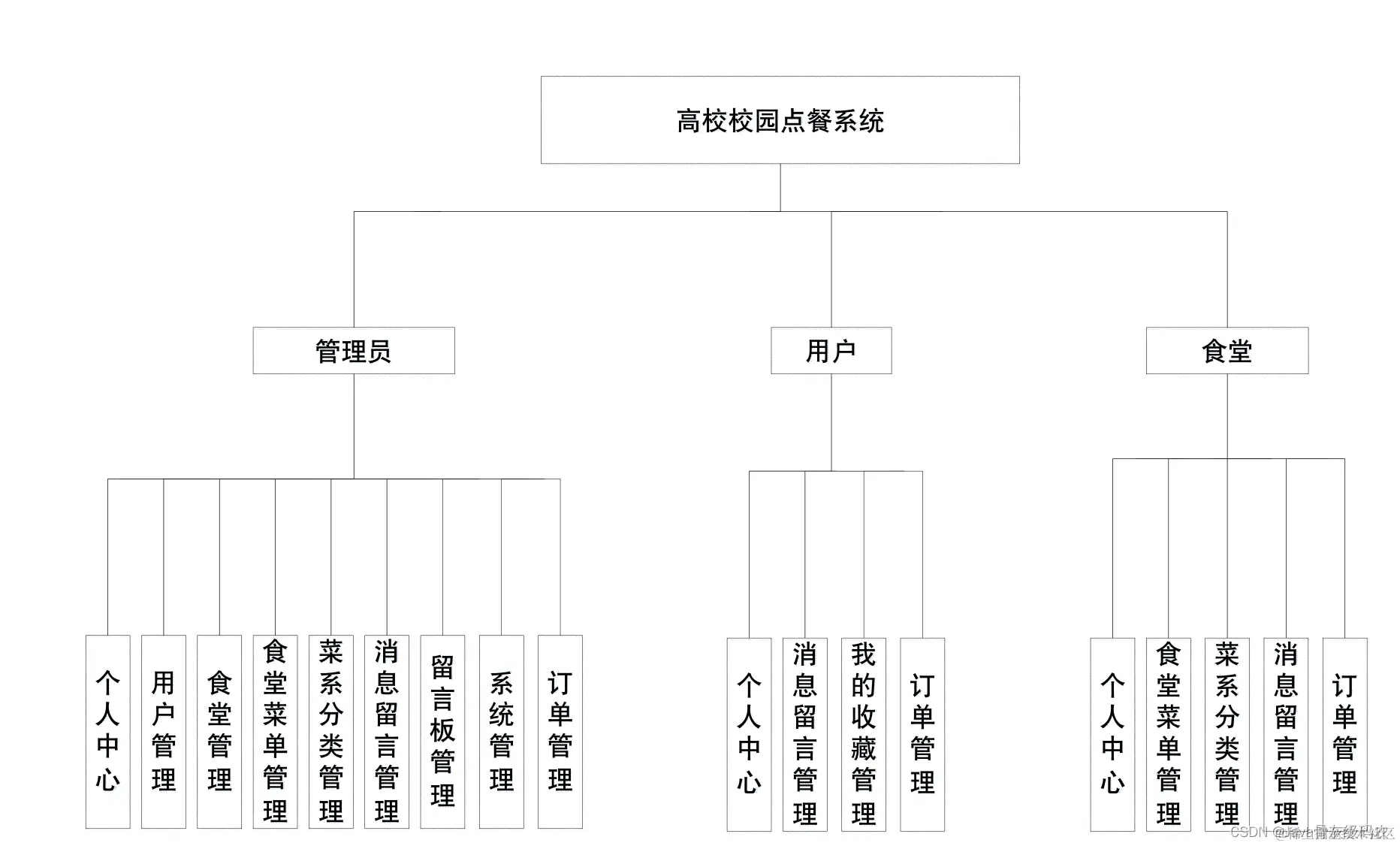 系统架构图属于系统设计阶段,系统架构图只是这个阶段一个产物,系统的总体架构决定了整个系统的模式,是系统的基础。高校校园点餐系统的整体结构设计如图