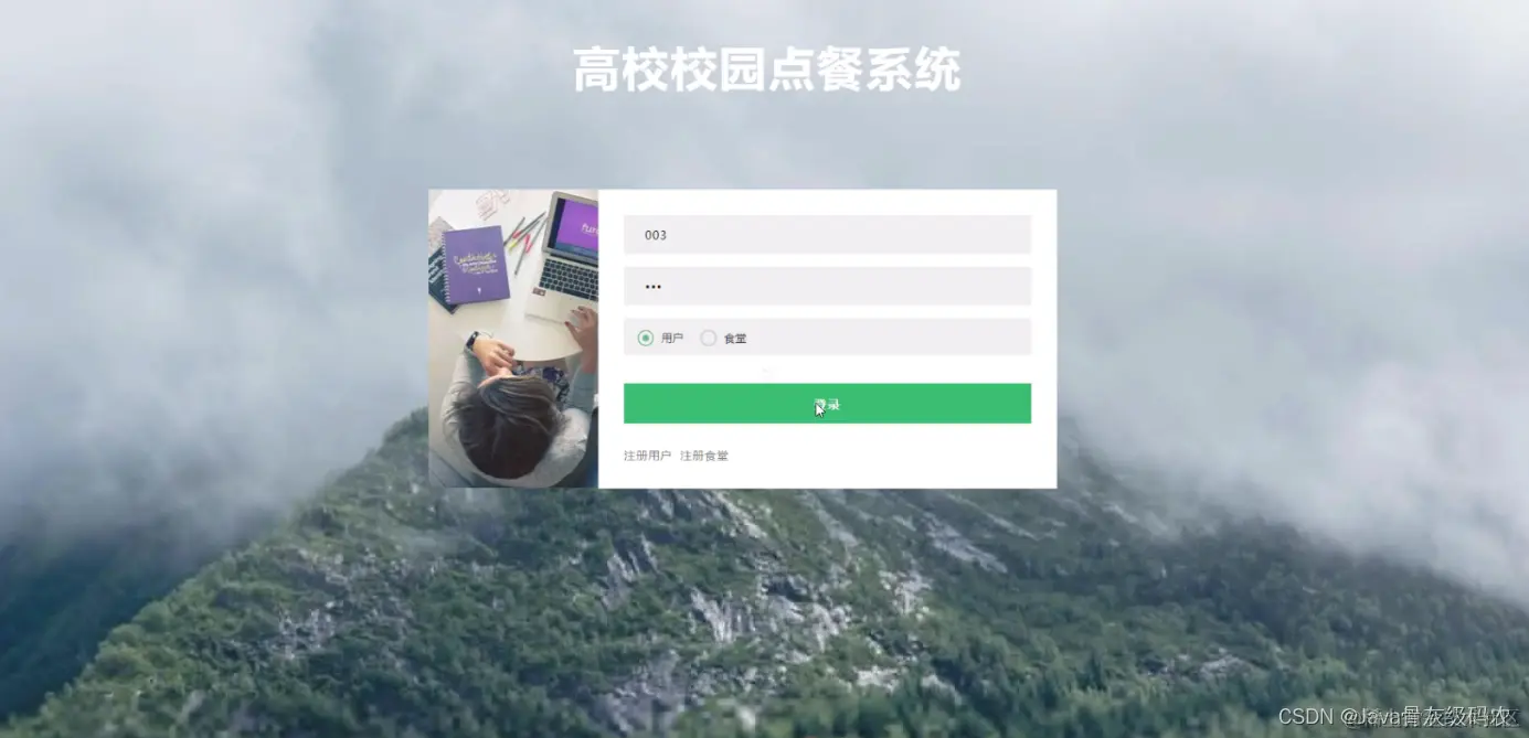 食堂登录进入高校校园点餐系统可以查看个人中心、食堂菜单管理、菜系分类管理、消息留言管理、订单管理等内容。
