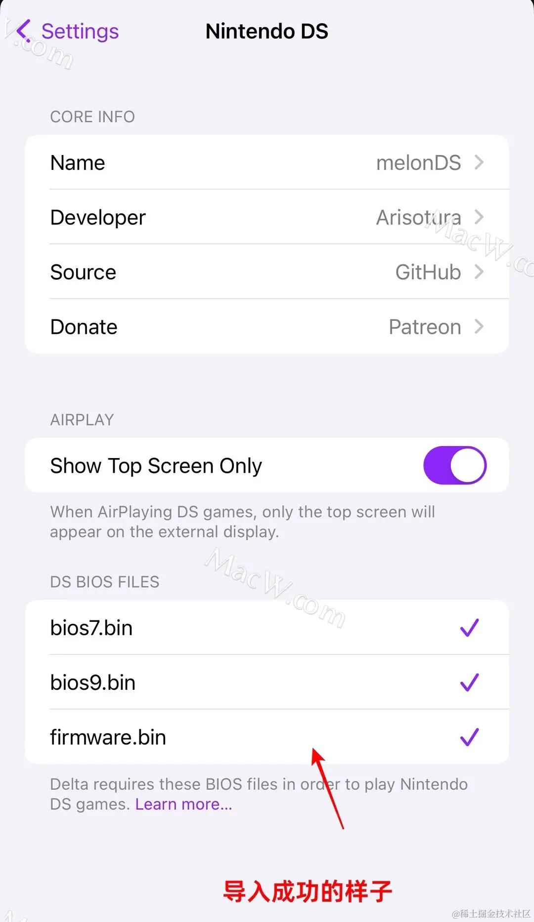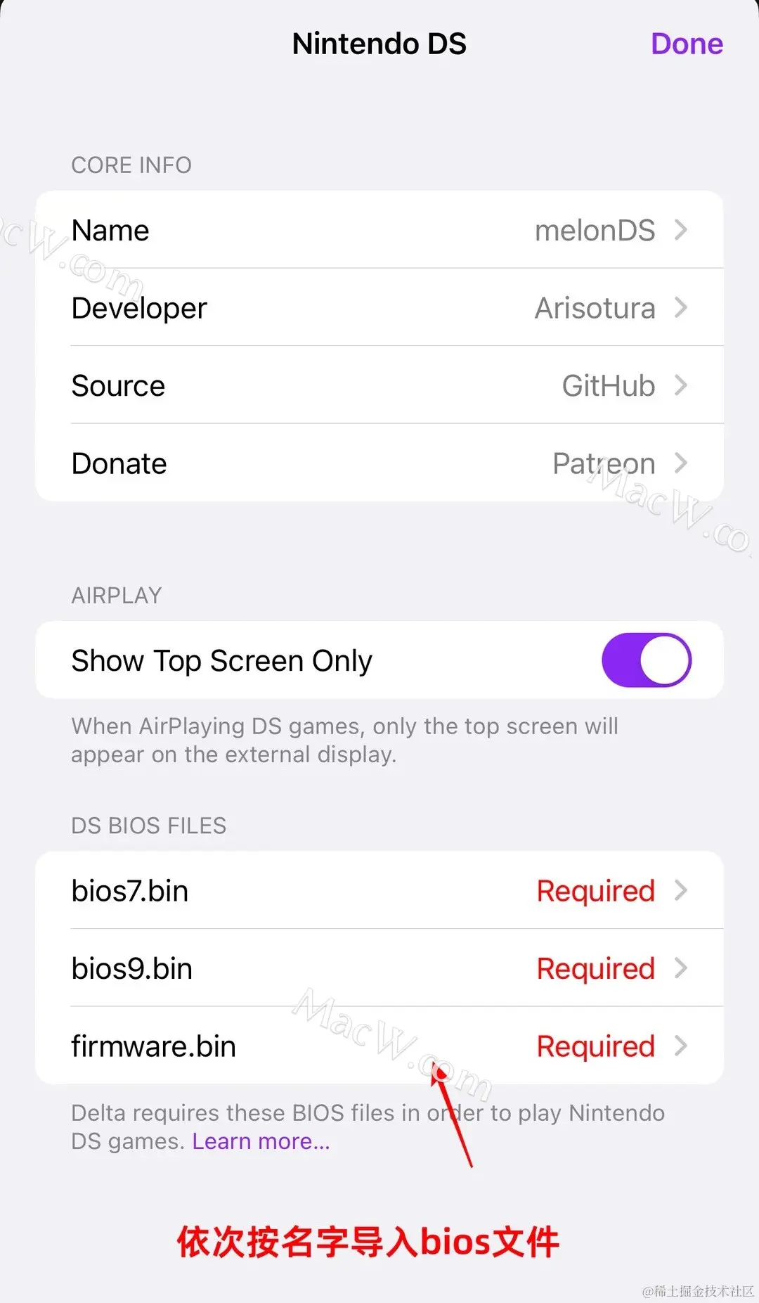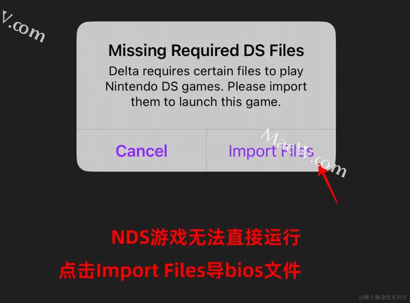 或者直接点击跳出的报错提醒,点击「Import Files」即可跳转到「Nintendo DS」设置项