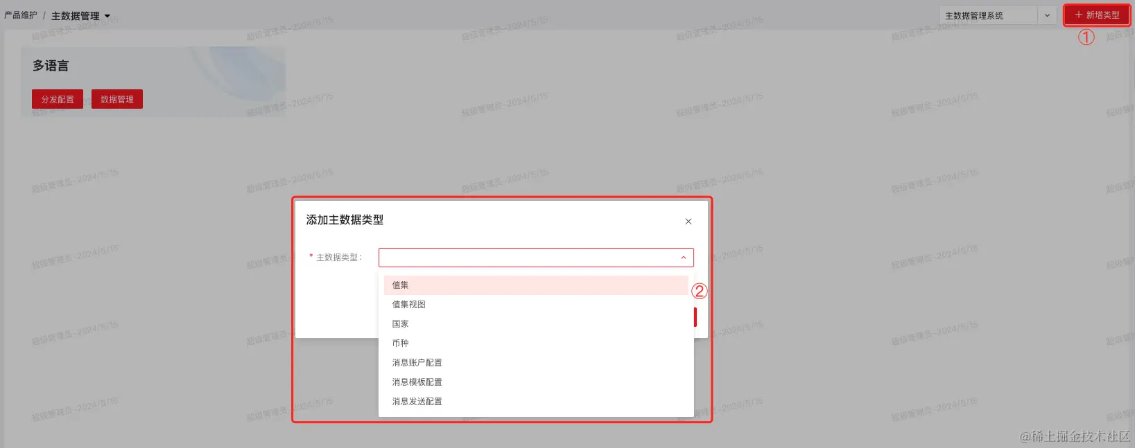 第一步:新增平台主数据类型