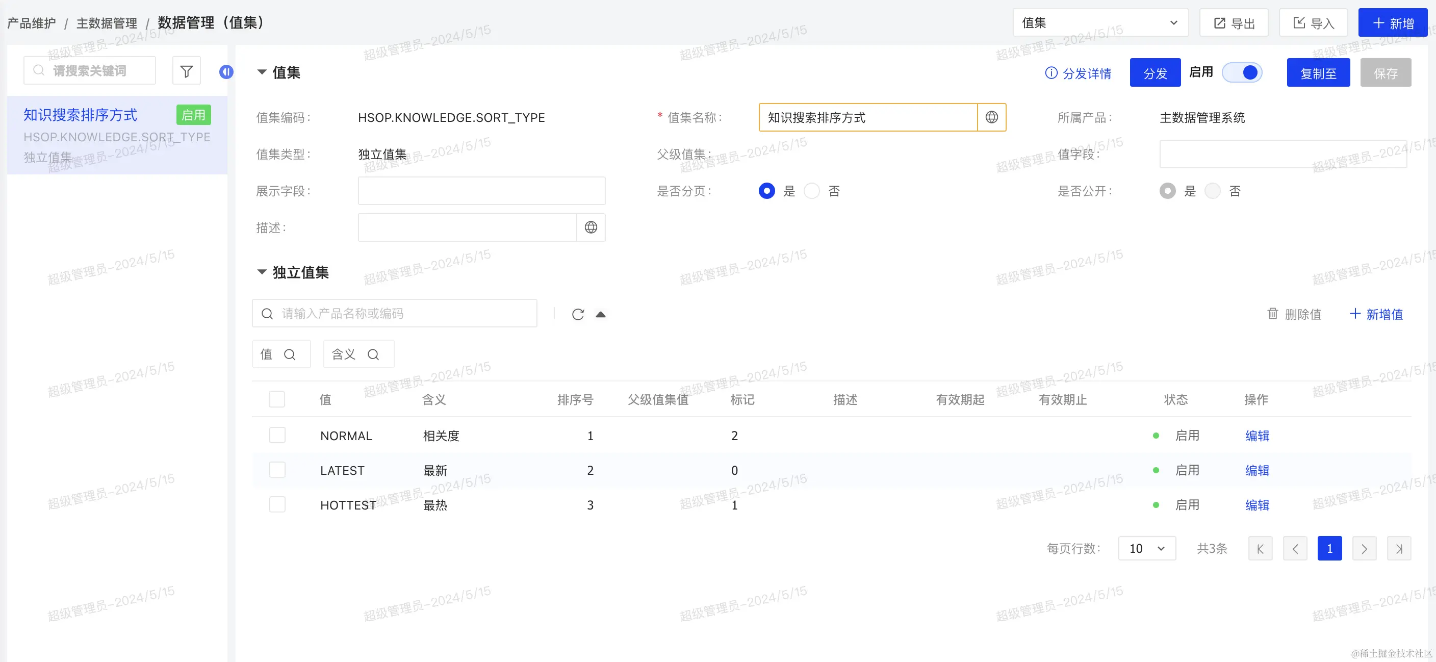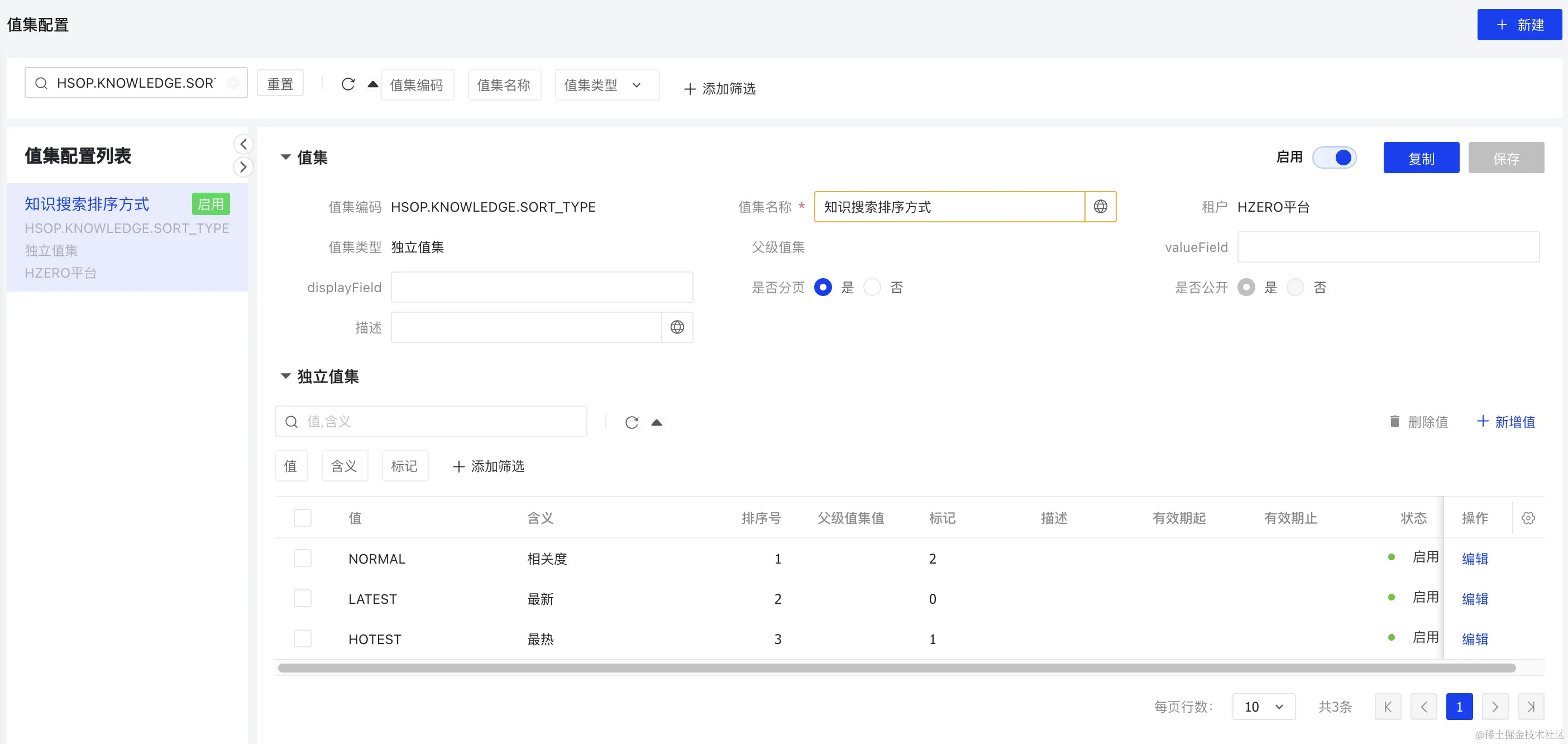 在每个主数据类型的维护页面稍有不同但是和HZERO系统基本保持一致,并且除了消息相关外均支持导入导出功能,可以快速进行数据初始化。以值集维护为例: