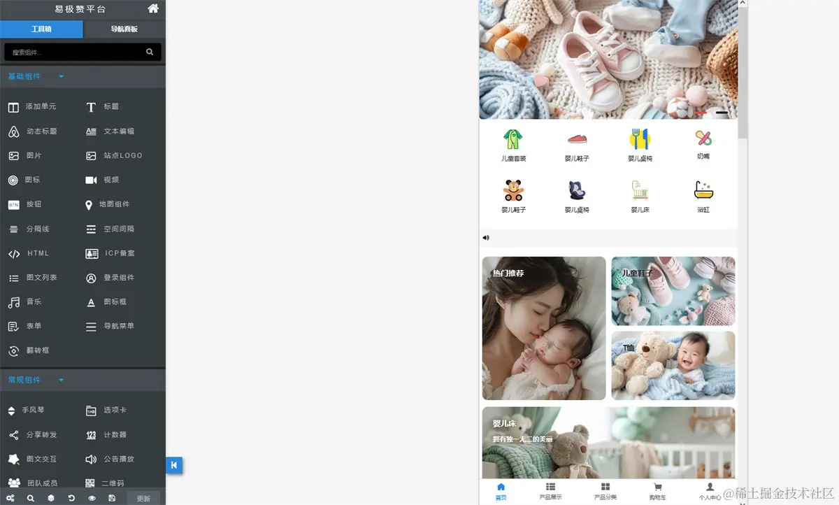 step3, 在线编辑修改站点内容,设计完成后,点击发布这样一个童装小程序商城就制作完成了