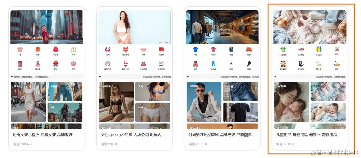 step1, 在「易极赞」的小程序模板中,选中童装小程序商城模板,一键即可生成发布自己的品牌设计小程序
