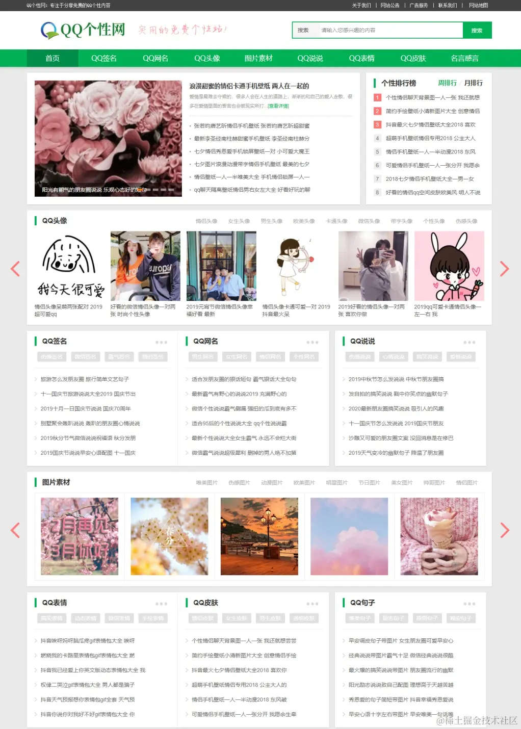 <meta name="description" content="QQ个性网专注于提供免费的QQ个性素材,每日精选最新最热门的QQ签名,QQ头像,QQ网名,图片素材,QQ说说,QQ表情,QQ皮肤内容,旨在打造一个实用的免费个性站。"/>