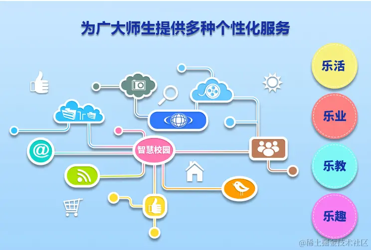 因此,智慧将转变“重管理轻服务”的思想,以服务建设为重点,将原有的业务系统按照用户的需求、使用习惯等因素重新进行封装,为学生、教师、领导等角色提供个性化的功能服务。