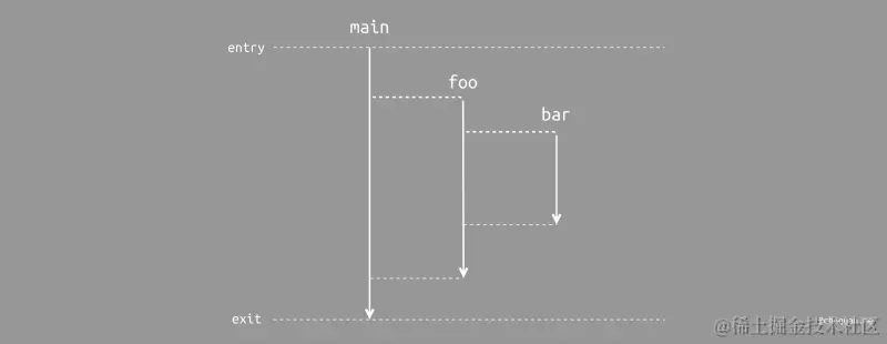 进一步分析这段代码中各个方法,可以发现 main 和 foo 中的并发任务派发其实是一种函数间的无条件 “跳转” 行为。虽然,main 和 foo 都会立即将控制流返回至调用者,但是它们各自生成了新的并发任务。这些并发任务并不知道自己从哪里来,它们的初始调用不存在于其所属线程的调用栈中,其生命周期也与调用者的作用域完全无关。
