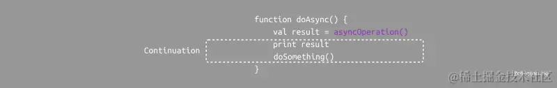 在代码层面,异步函数之后的代码是怎么实现等待异步函数执行完成之后再执行的呢?试想一下如下这段伪代码,为什么 print result 会等待异步函数 asyncOperation 完成之后才会执行的呢?怎么做到的?