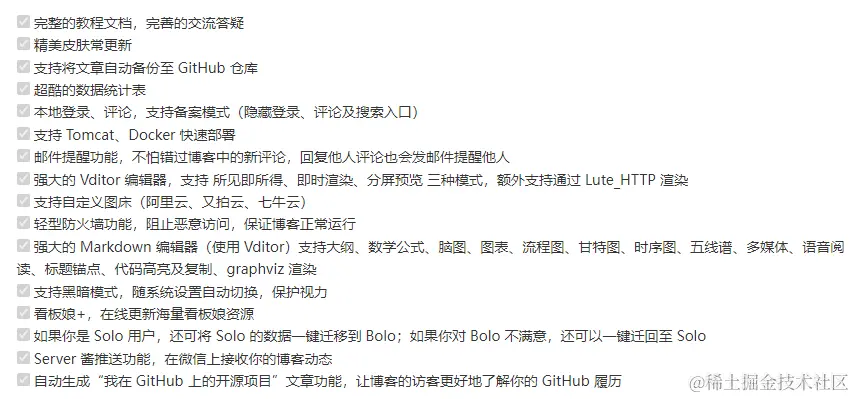 Bolo 基于 Latke 框架搭建,响应速度快,占用资源小。完全免费,代码全部开源且允许二次开发自用。