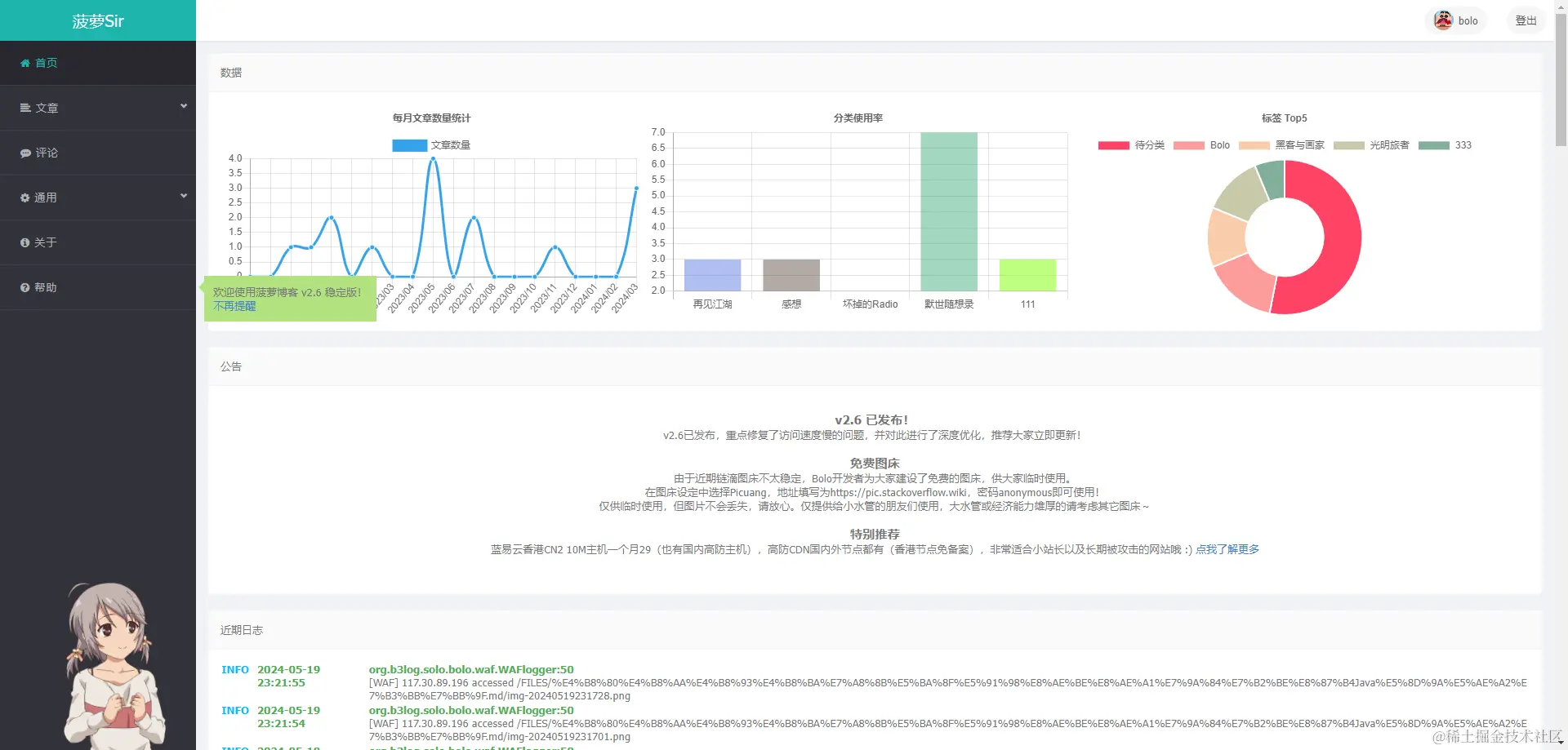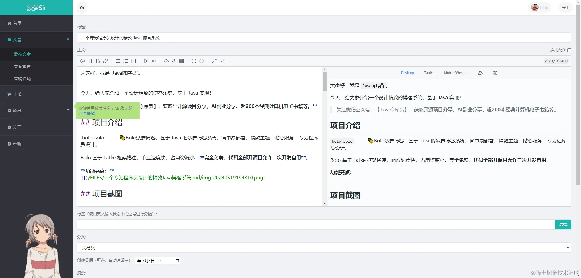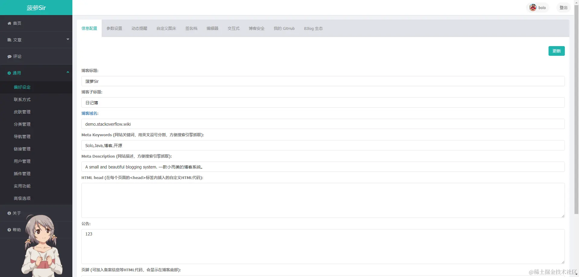 bolo-solo —— 🍍Bolo菠萝博客,一个基于 Java 实现的博客系统,简单易部署,具有精致的主题,专为程序员设计。