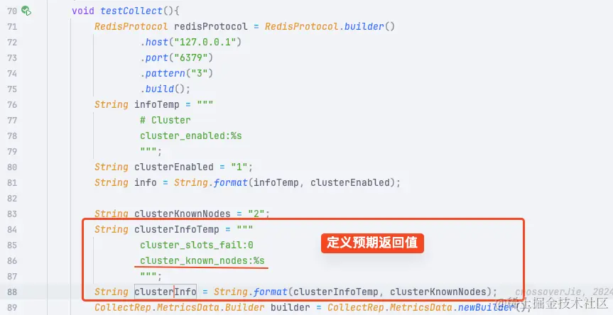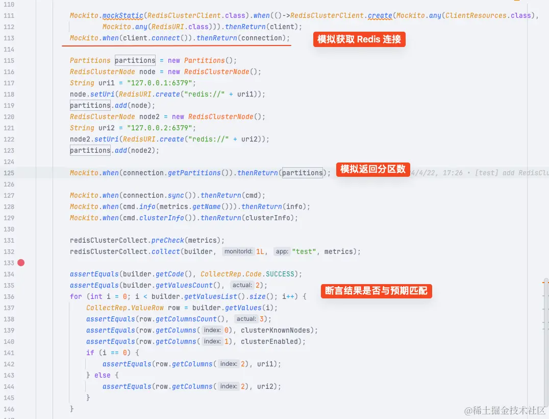 这里我以 RedisCommonCollectImpl为例,主要的单测逻辑就是模拟 Redis 客户端的返回数据,然后在 Collect 的代码里查看不同的处理逻辑,其实就是要覆盖各种分支以及异常的情况。