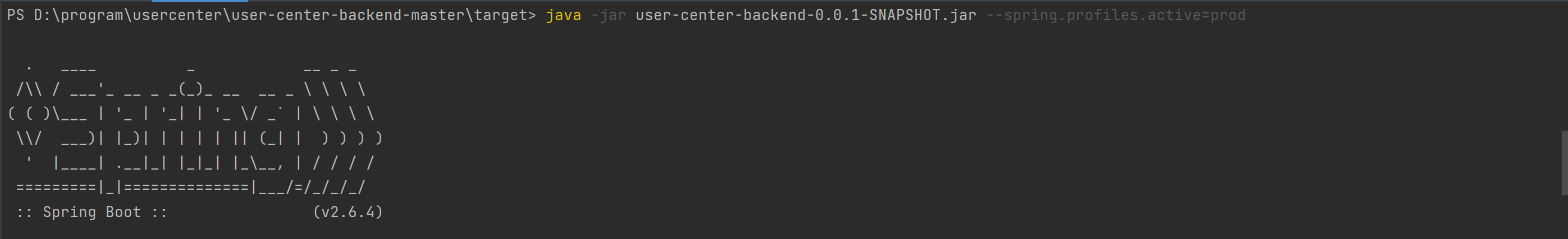 java -jar user-center-backend-0.0.1-SNAPSHOT.jar --spring.profiles.active=prod
