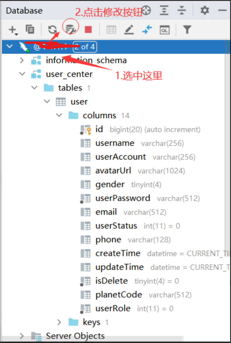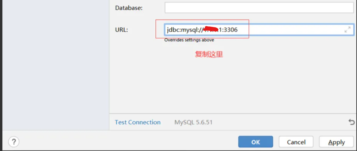 去改一下线上的配置文件,url可以去修改那里查看复制,后面加上要连接的数据库就可以了。