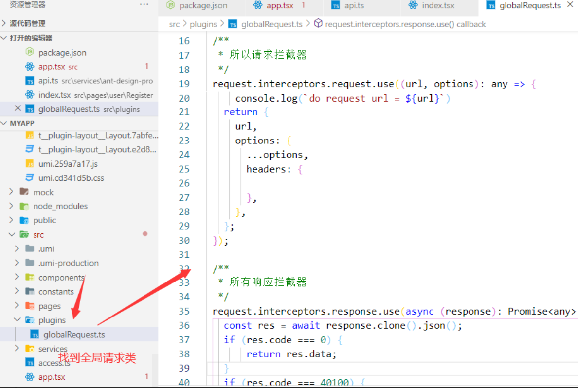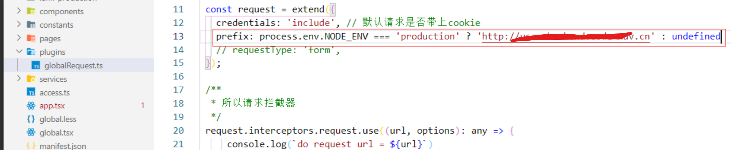 现在对里面的umi-request请求库,做一些额外的配置,我们可以用prefix。
