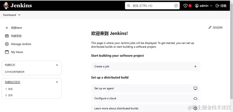 cat /root/jenkins_home/secrets/initialAdminPassword - 输入域名和端口号,输入初始密码即可登录