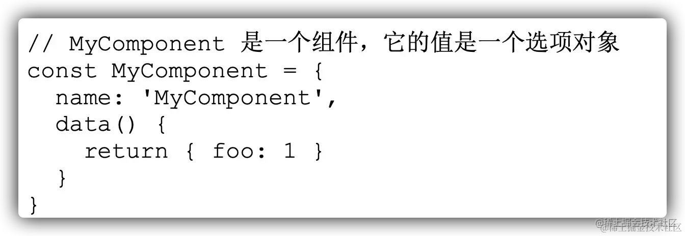 组件本质上就是一个 JavaScript 对象,比如,以下对象就是一个基本的组件