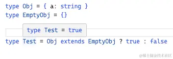 - 对象类型范围和你想的不一样,其实看上图就知道了。对于空对象类型 {},它和那些 string number 类型的字面量类型不一样。空对象类型范围其实很大。包含所有可能的键与值的对象类型情况。总之越精确范围越小。
