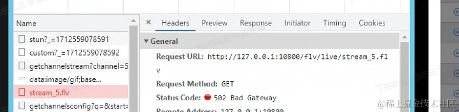 有用户反馈,项目现场在重启RTSP/Onvif安防视频监控云平台后,通道显示在线,但是视频无法播放,一直加载中,接口返回502错误,如下所示: