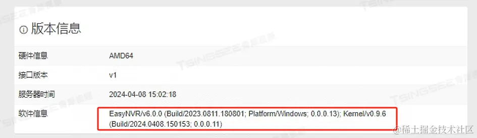 出现这种报错一般是服务器异常导致。查看用户现场平台版本信息,发现当前流媒体程序并没有正常启动,如下:
