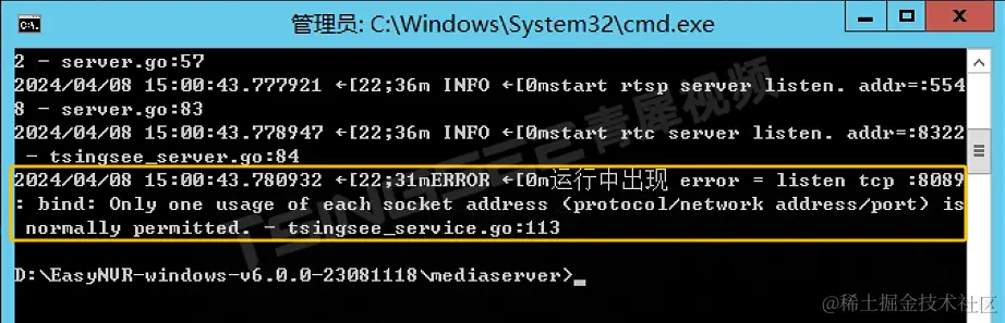 修改端口后服务启动正常,视频已经能播放了。