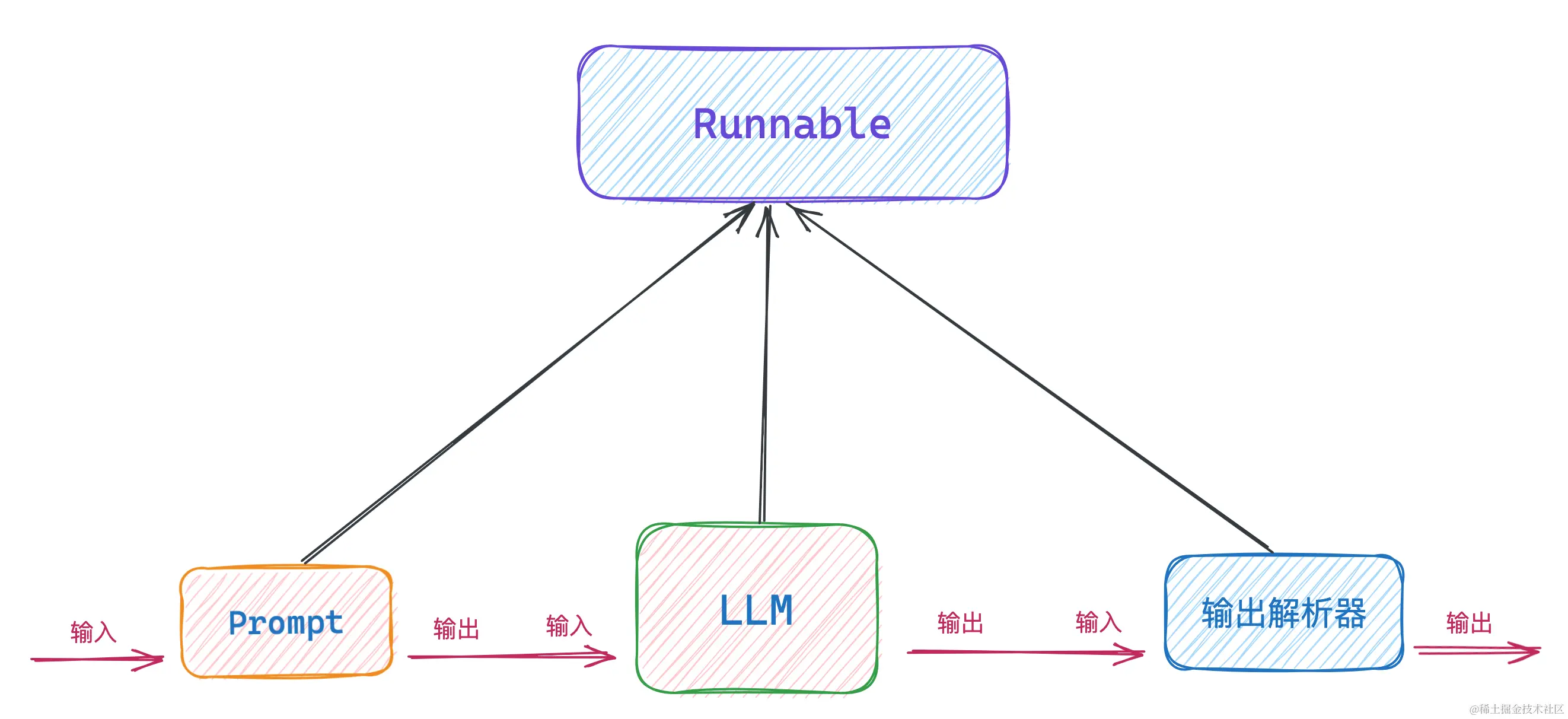 在LangChain里只要实现了Runnable接口,并且有invoke方法,都可以成为链。实现了Runnable接口的类,可以拿上一个链的输出作为自己的输入。