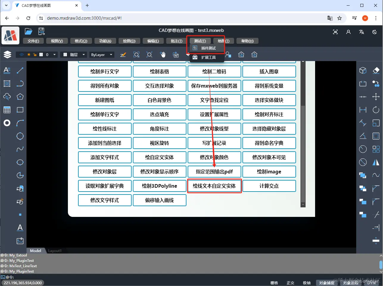 上面的代码是最简单的画直线的操作,更复杂点的自定义实体例子,可以打开在线DEMO查看,如下图: