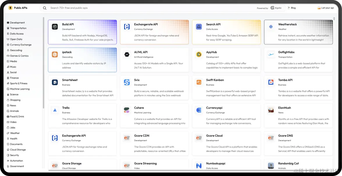 集合了1000多个免费公开的REST API的列表,供开发者使用,包括电影API、动漫API、天气API、音乐API、游戏和漫画API、货币API、体育API、科学API、开放数据API等等。